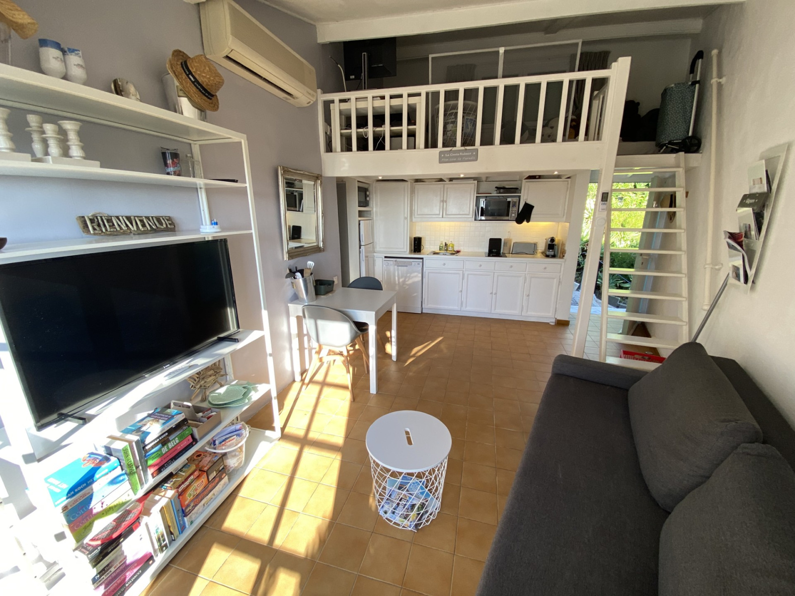 La Croix-Valmer (83420)Découvrez ce magnifique mas parfaitement entretenu, idéalement situé à proximité du village, dans un environnement calme et verdoyant.Offrant une superbe vue sur la mer et les vignobles. Cette propriété allie charme, confort et luminosité.Elle se compose de :•Une chambre principale,•Une cabine,•Une mezzanine,•Une cuisine entièrement équipée,•Un séjour lumineux ouvrant sur une terrasse parfaitement ensoleillée d'environ 35 m² , idéale pour profiter des beaux jours.La résidence offre également :•Une piscine,•Des courts de tennis,•Un parking privé...