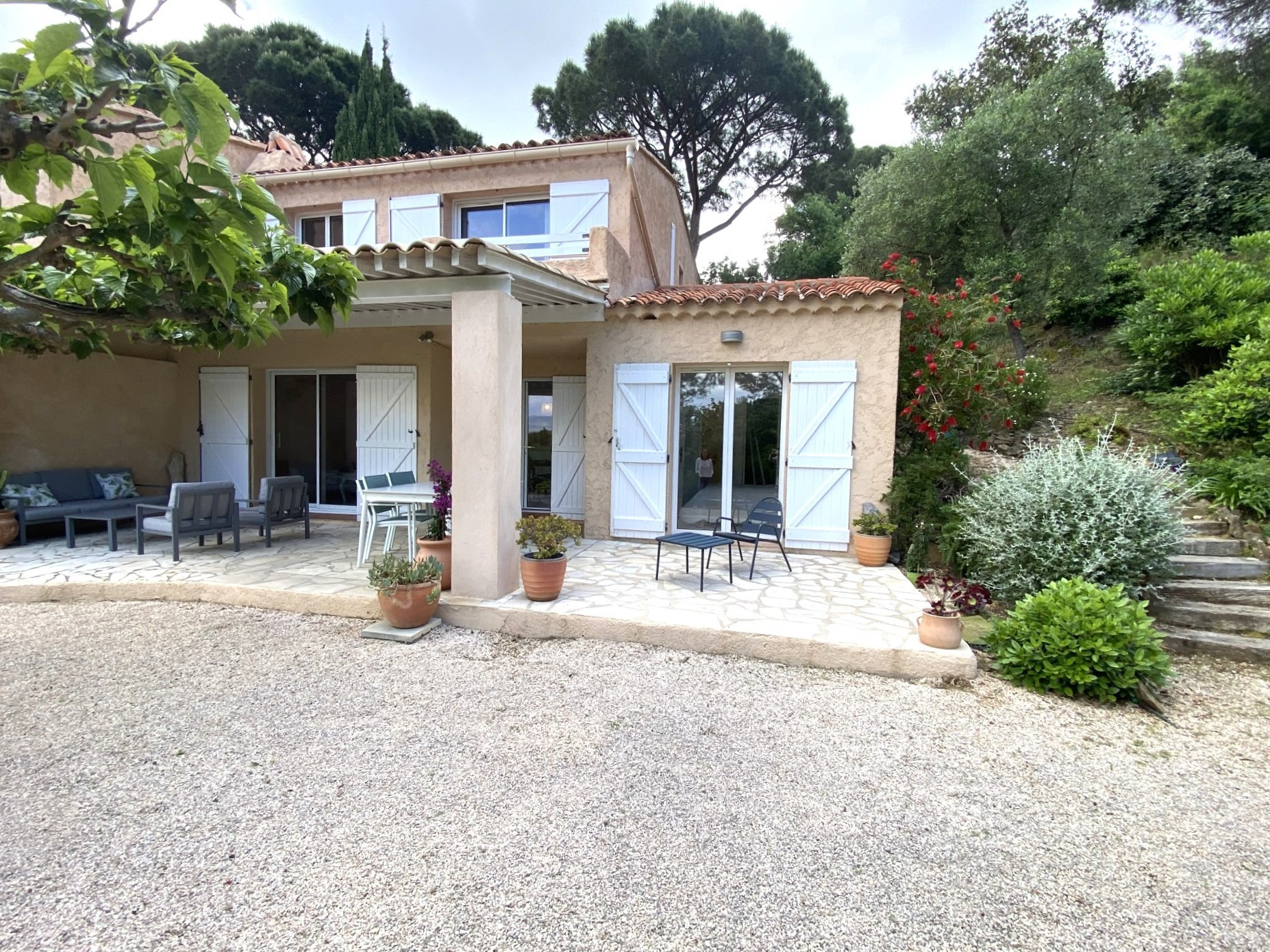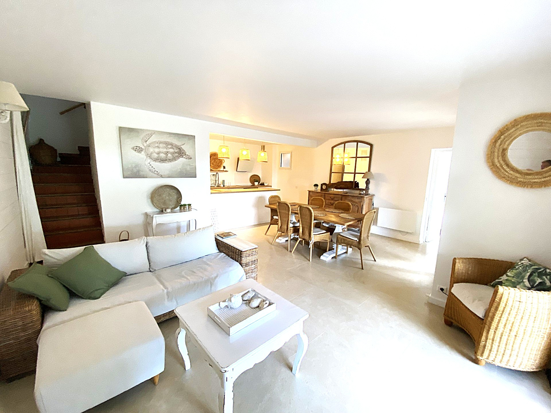 La Croix-Valmer (83420)Dans le secteur recherché et privilégié de Gigaro decouvrez cette magnifique maison mitoyenne d'un coté aux prestations soignées. Edifiée sur un terrain piscinable de 2270 m² cette propriété offre une superficie généreuse avec 3 chambres 2 salles de bains un vaste séjour lumineux une cuisine ouverte entièrement équipée une buanderie cellier .L'intérieur soigné s'ouvre sur de beaux volumes et une parfaite harmonie entre confort et modernité.Un cadre de vie exceptionnel à deux pas des plages et des sentiers. les chambres sont climatisées.