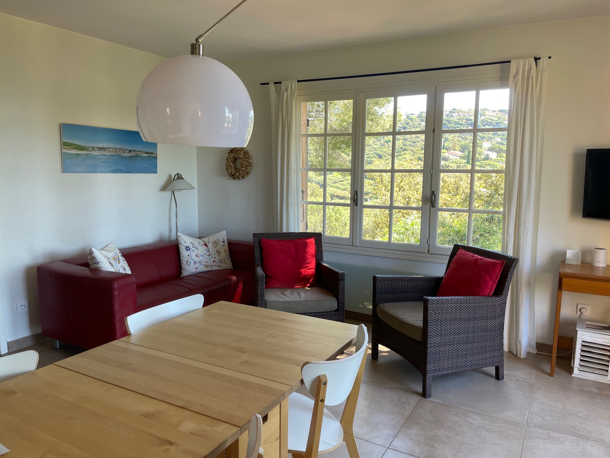 La Croix-Valmer (83420)Très belle situation pour ce logement situé dans LES HAUTS DE GIGARO, 2 chambres, avec jouissance d'un jardin avec terrasse de 200m².Très bon état général, cuisine, salle d'eau rénovées.Exposition SUD avec une très belle vue dominante sur verdure et mer.De plus, ce logement est vendu avec un garage, très rare à GIGARO.