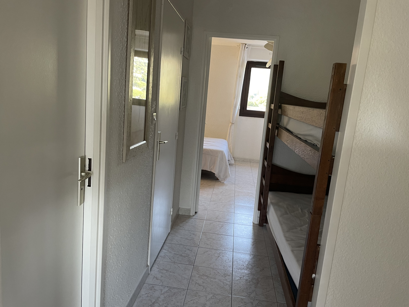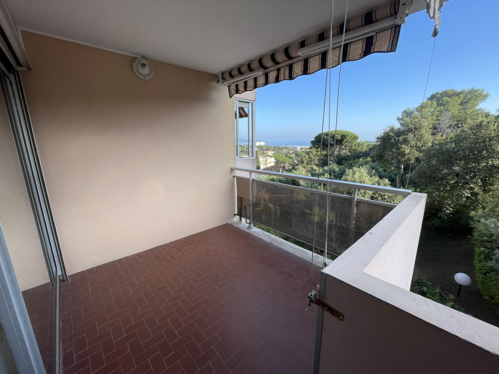 Cavalaire-sur-Mer (83240)Dans une résidence avec piscine, au 3ème étage avec ascenseur, appartement traversant type T2 avec loggia orientée Sud avec une belle vue sur Mer.Plage et commerces à 1Km.Très bon état général.Parking privé.